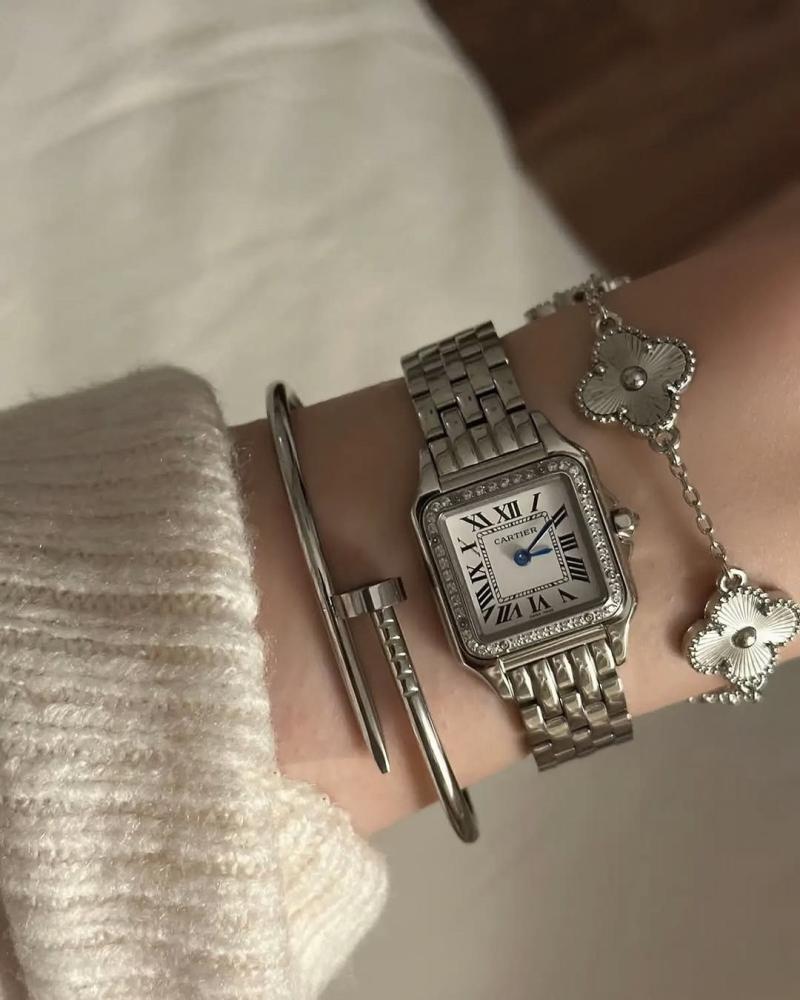 تألقي بإطلالة فاخرة مع مجموعة الأساور مع ساعه المميزة التي تجمع بين الأناقة والعصرية